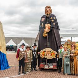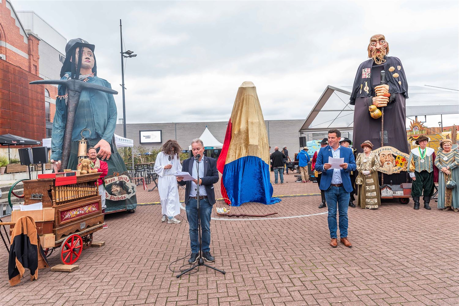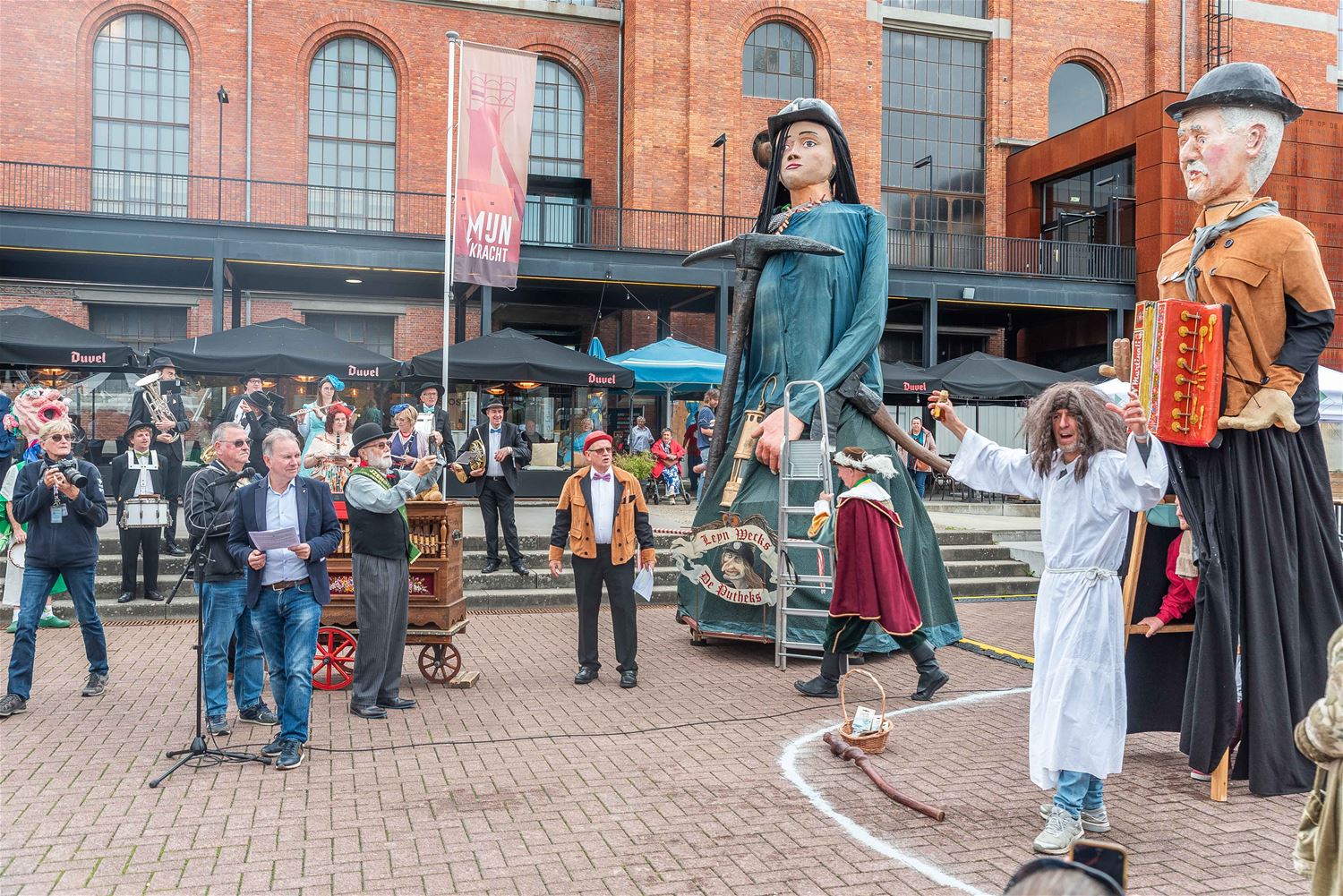 Uiteraard maakte de reus de nodige danspasjes, eerst op de schouders van de burgemeester, daarna op een geoefende pijnder.